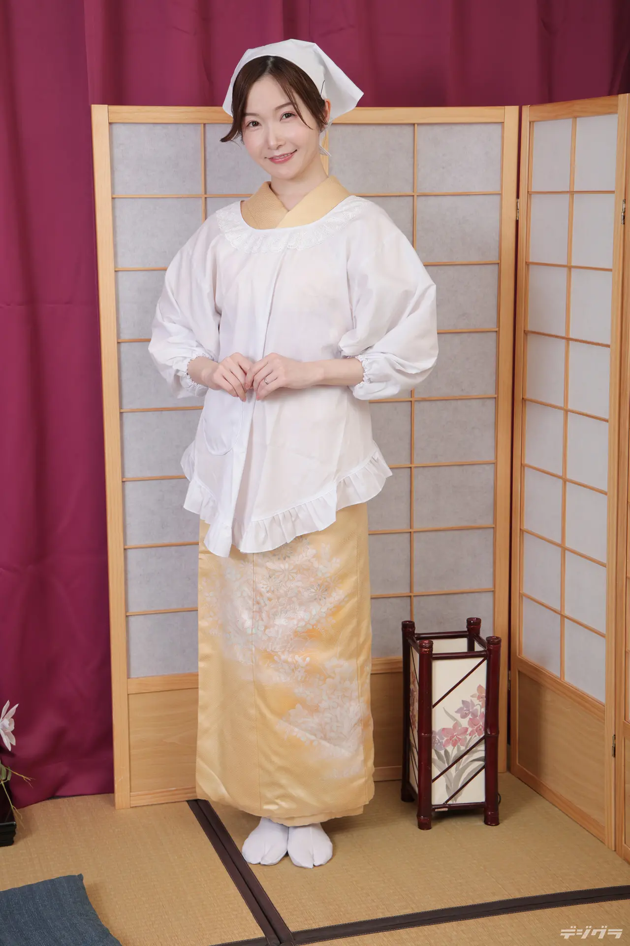 着物に割烹着と三角巾がめちゃくちゃ似合う!