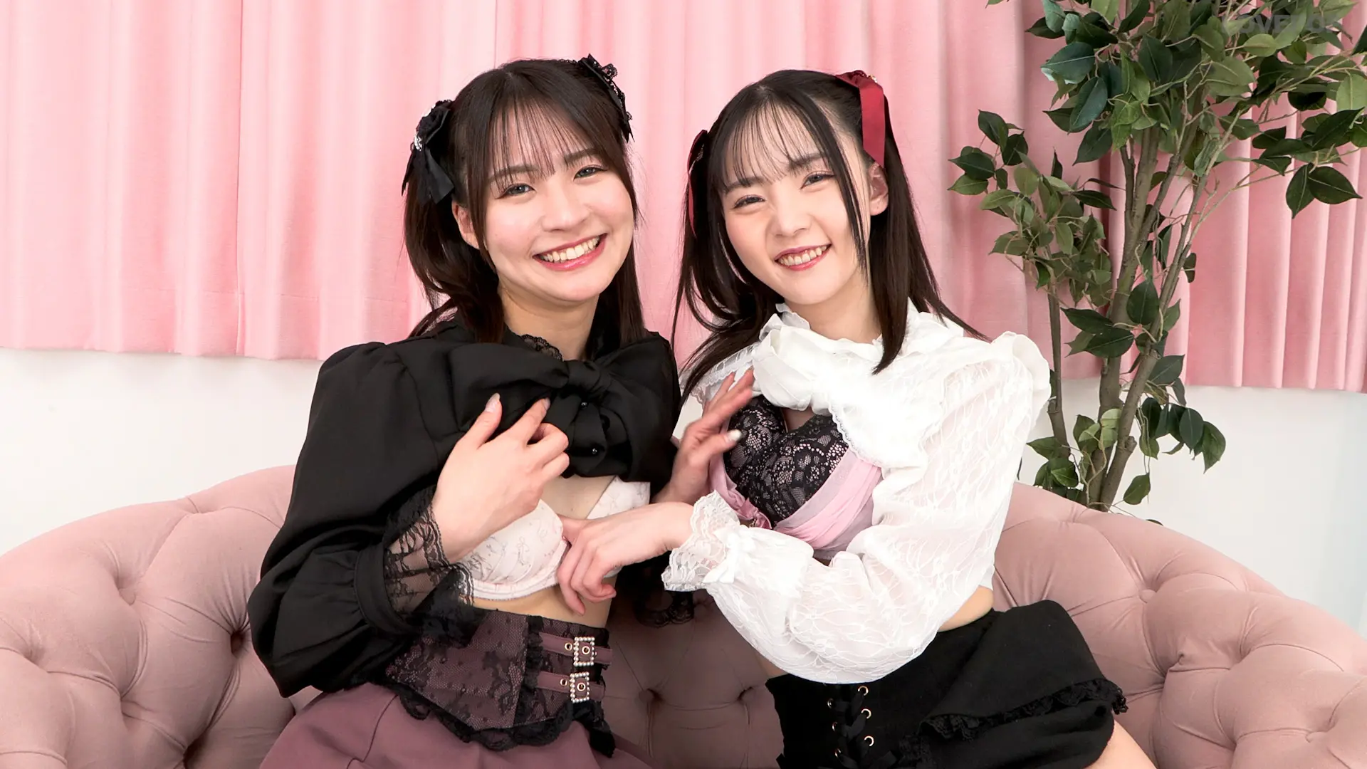 かわいい女の子が2人で座っている。