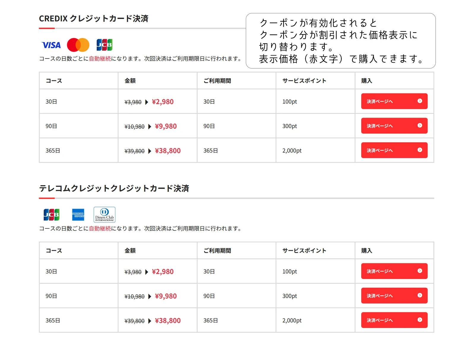 ※現在月額見放題ご利用中のユーザー様も追加購入時にご利用いただけます。クレジットカード決済の場合は追加購入したコースで自動継続されますのでご注意ください。